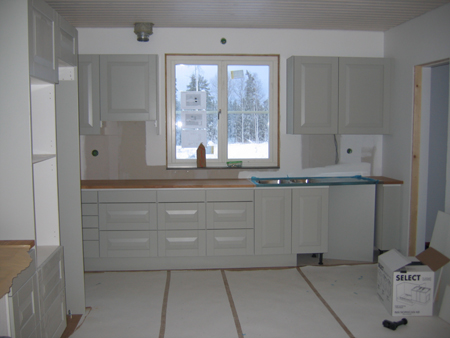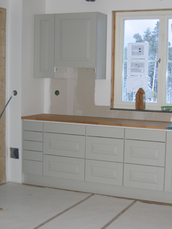 Köket är färdigt så när som på kakel och finlir som lister och dylikt.
