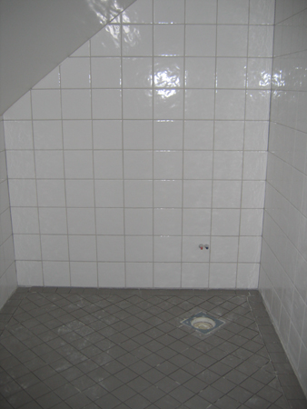 Här ska vi snart sätta upp våra badrumsmöbler i ek, från Vedum.
