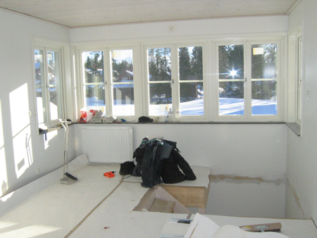 Allrummet, fortfarande med skyddspapp på golvet eftersom...